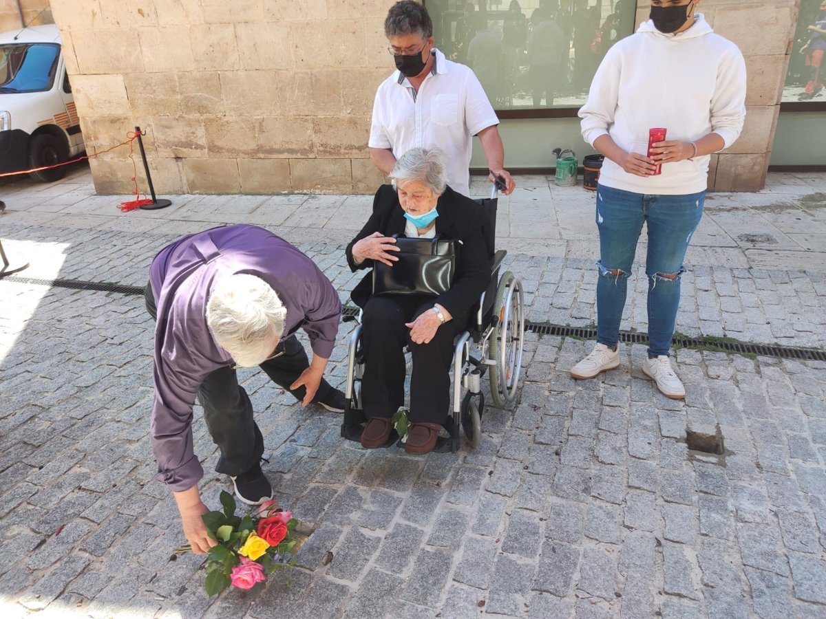 El acto ha contado con la presencia de familiares de los deportados, que han participado en la colocación de las losetas, y con alumnos del IES Antonio Machado, que han formado parte de la investigación de los deportados.