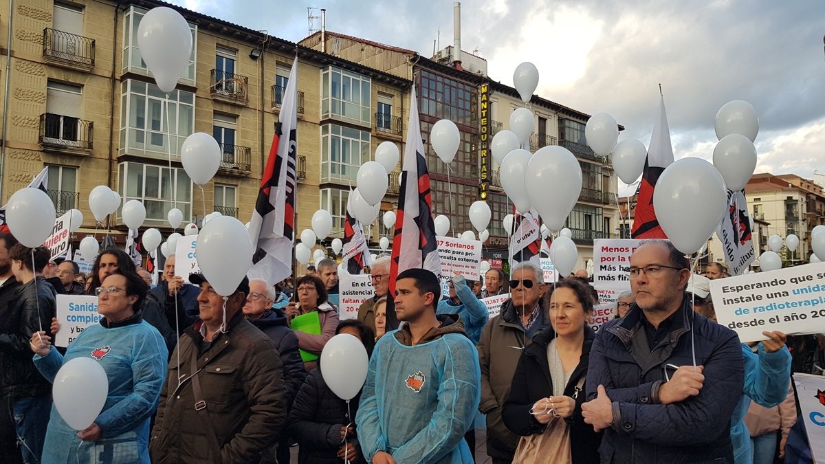 Para finalizar el acto, los asistentes a la concentración han lanzado cientos de globos blancos en homenaje a todas las personas que están en lista de espera para ser atendidas por el Sacyl y a las que tienen que viajar para recibir un tratamiento médico fuera de la provincia de Soria.