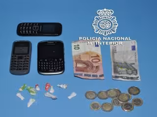 Al identificar y registrar a ambos individuos, se pudo comprobar que habían cambiado dinero por cocaína. Al vendedor le fueron intervenidos otros nueve envoltorios con 2,6 gramos de droga, así como dinero en metálico y tres teléfonos móviles que presumiblemente utilizaba para establecer sus contactos con la clientela.