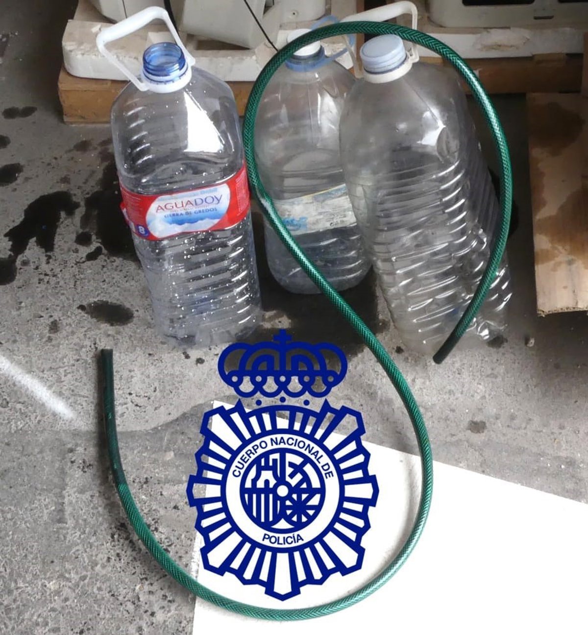 Garrafas empleadas por el detenido para guardar el gasoil. - POLICÍA NACIONAL