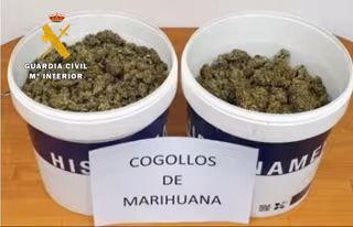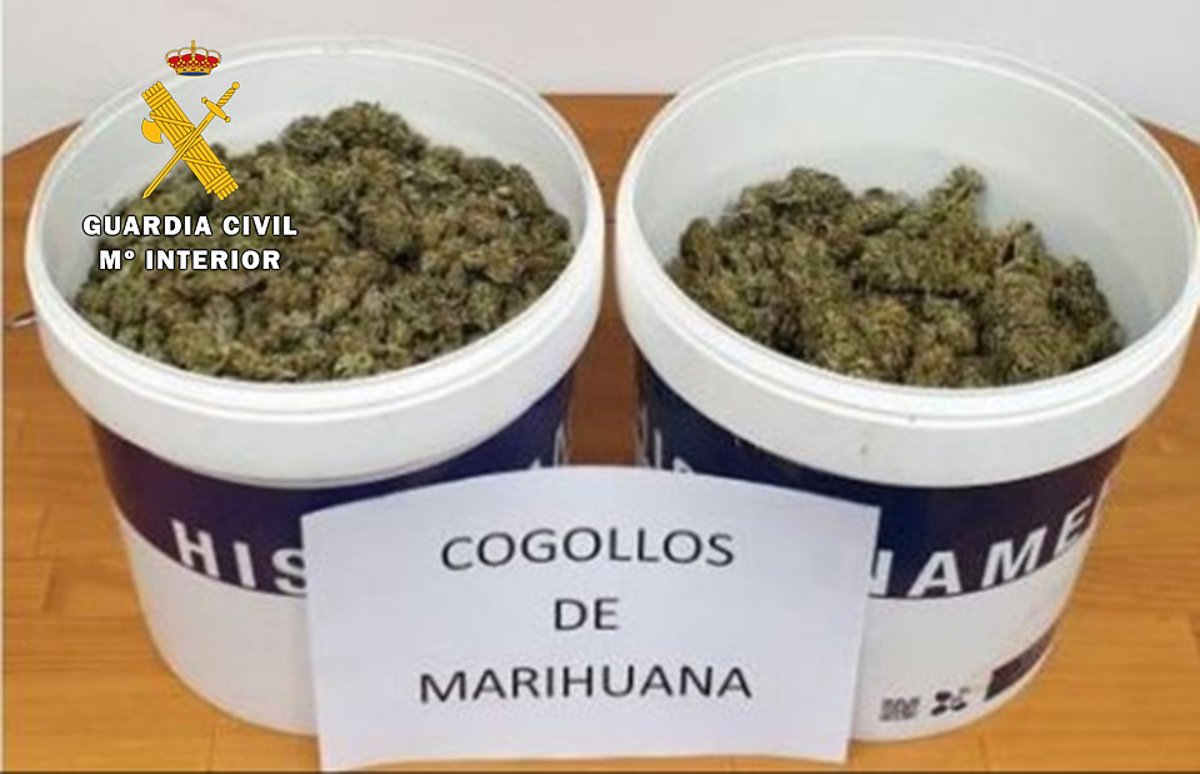 Una vez parado, los agentes que estaban identificando al conductor percibieron un "fuerte y característico olor" a marihuana que salía del interior de la furgoneta y, tras un somero registro al interior del habitáculo de carga, descubrieron varios sacos "repletos" de restos de tallos y ramas y dos botes de pintura que contenían cogollos secos de marihuana con un peso de 2.500 gramos que fueron aprehendidos.