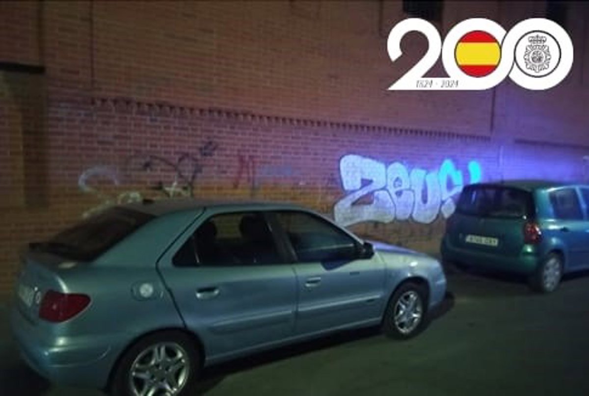 La Policía localizó el vehículo utilizado por el individuo, en el que se intervinieron varios objetos empleados para realizar pintadas tales como cinco botes de spray con cuatro boquillas diferentes, un rotulador, un cuchillo, un guante muñequera y diferentes prendas oscuras y varias herramientas.