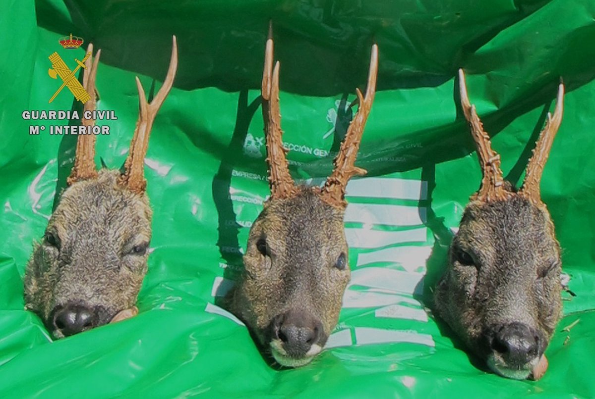 Al comprobar el contenido de las bolsas encontraron en su interior tres cabezas de corzo, con evidencias de haber sido recientemente abatidos, las cuales carecían del correspondiente precinto.