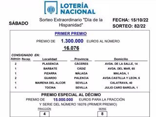 El sorteo extraordinario del 'Día de la Hispanidad' de la Lotería deja parte del primer premio en Guardo (Palencia) - LOTERÍAS Y APUESTAS DEL ESTADO