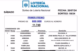 El sorteo de este sábado, 20 de julio, de la Lotería Nacional ha dejado parte de un primer premio en la localidad leonesa de Armunia y en la segoviana de Bernardos, así como un segundo premio que ha recaído íntegro en Valladolid capital, según informa Loterías y Apuestas del Estado (Onlae) a través de un comunicado.