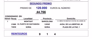 Así, el Despacho receptor número 74.030 de Soria, ubicado en la Plaza de la Paz, 1, ha vendido décimos del 44.766, agraciado con el segundo premio y que también ha sido consignado en un Despacho de Cádiz y en una Administración de Barcelona.