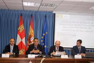 El subdelegado del Gobierno, Cecilio Vadillo, y el presidente de la Diputación vallisoletana, Ramiro Ruiz Medrano, presentaron las intervenciones que se llevarán a cabo acompañados por miembros de la Dirección General de Tráfico, Guardia Civil y miembros de los clubes motoristas Vallamoto (delegado de la Plataforma Motera para la Seguridad Vial en la provincia), Turismoto y Ruteros del Pisuerga.