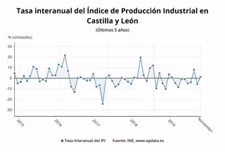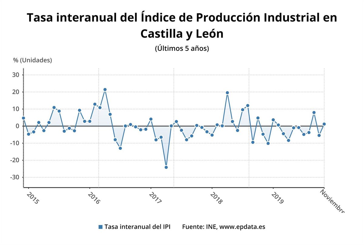 El Índice General de Producción Industrial (IPI) en Castilla y León aumentó un 1,2 por ciento el pasado mes de noviembre en relación al mismo mes de 2018, frente a un descenso de medio punto en España que registra en este caso una tasa 1,4 puntos inferior a la de octubre, según ha informado este viernes el Instituto Nacional de Estadística (INE).