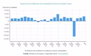 Y si se compara la afiliación media de abril con la de marzo el número de afiliados a la Seguridad Social en Castilla y León aumentó en 6.500 personas, lo que en términos relativos supuso un aumento del 0,69 por ciento, inferior que la subida de la media del país que se situó en un 1,17 por ciento con 238.436 afiliados más.