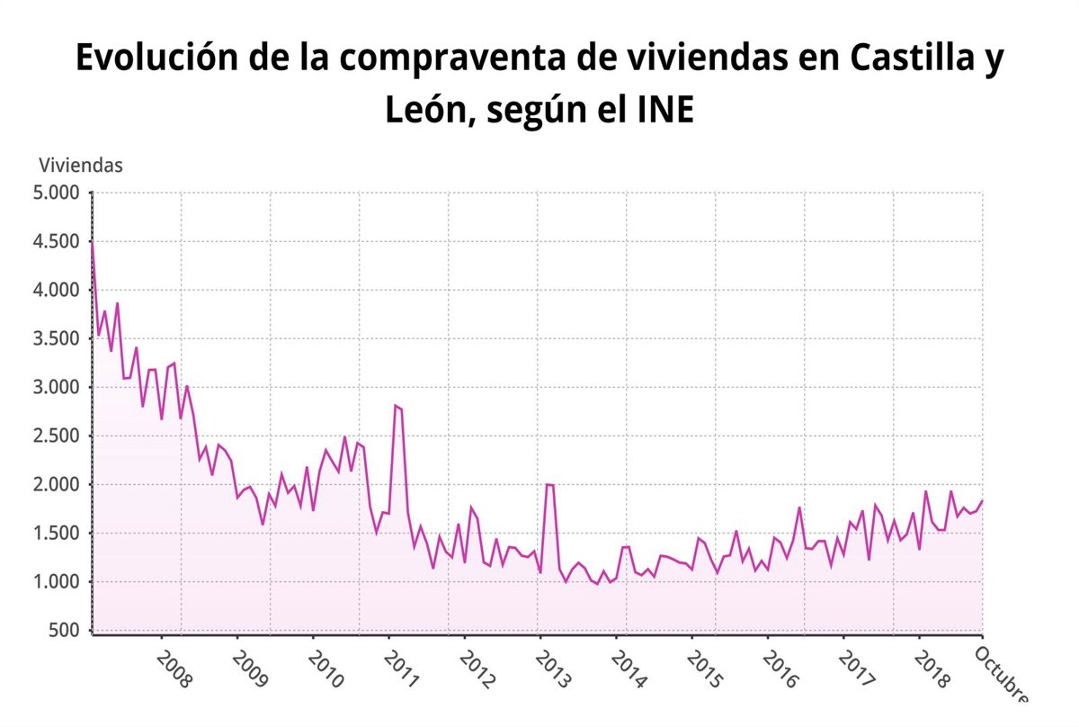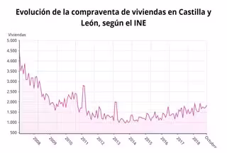 Además, Castilla y León se situó en el quinto puesto por la cola en el ranking nacional en el porcentaje de compraventas de viviendas por cada 100.000 habitantes, con 95.
