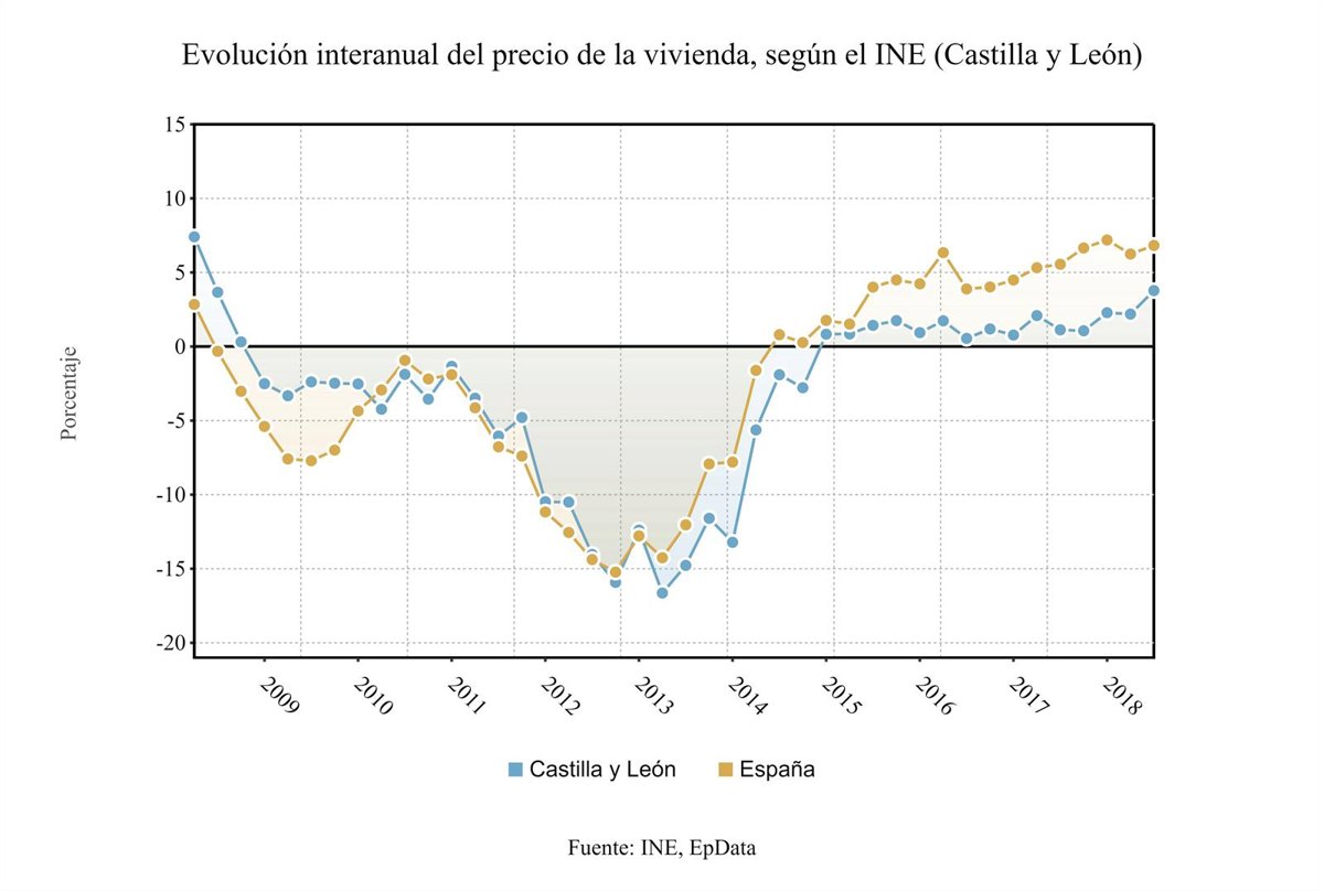 El precio medio de la vivienda libre subió un 3,8 por ciento en el segundo trimestre en tasa interanual en Castilla y León, tres puntos menos que la media nacional que creció un 6,8 por ciento, y 1,6 puntos más que el crecimiento experimentado en el primer trimestre que fue del 6,2 por ciento.