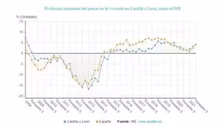 La tasa anual del precio de la vivienda subió en el tercer trimestre respecto al segundo en todas las comunidades autónomas, excepto en País Vasco, donde cayó 1,2 puntos. Los mayores incrementos se han producido en La Rioja, Andalucía y Galicia, con subidas de 2,8, 2,4 y 2,3 puntos, respectivamente, y en el caso concreto de Castilla y León pasa de un 2,6 al citado 4,2 por ciento, 1,6 puntos más.