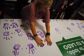 Delegados de CSIF en Valladolid muestran con sus manos moradas el rechazo de la violencia de género. - CSIF VALLADOLID. - Archivo