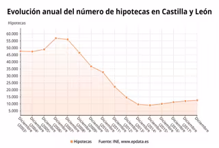 El número de hipotecas constituidas sobre viviendas en Castilla y León se situó en 12.632 en el año 2018 y aumentaron un 4,8 por ciento (10,3 por ciento en España), según los datos difundidos este miércoles por el Instituto Nacional de Estadística (INE) y recogidos por Europa Press.