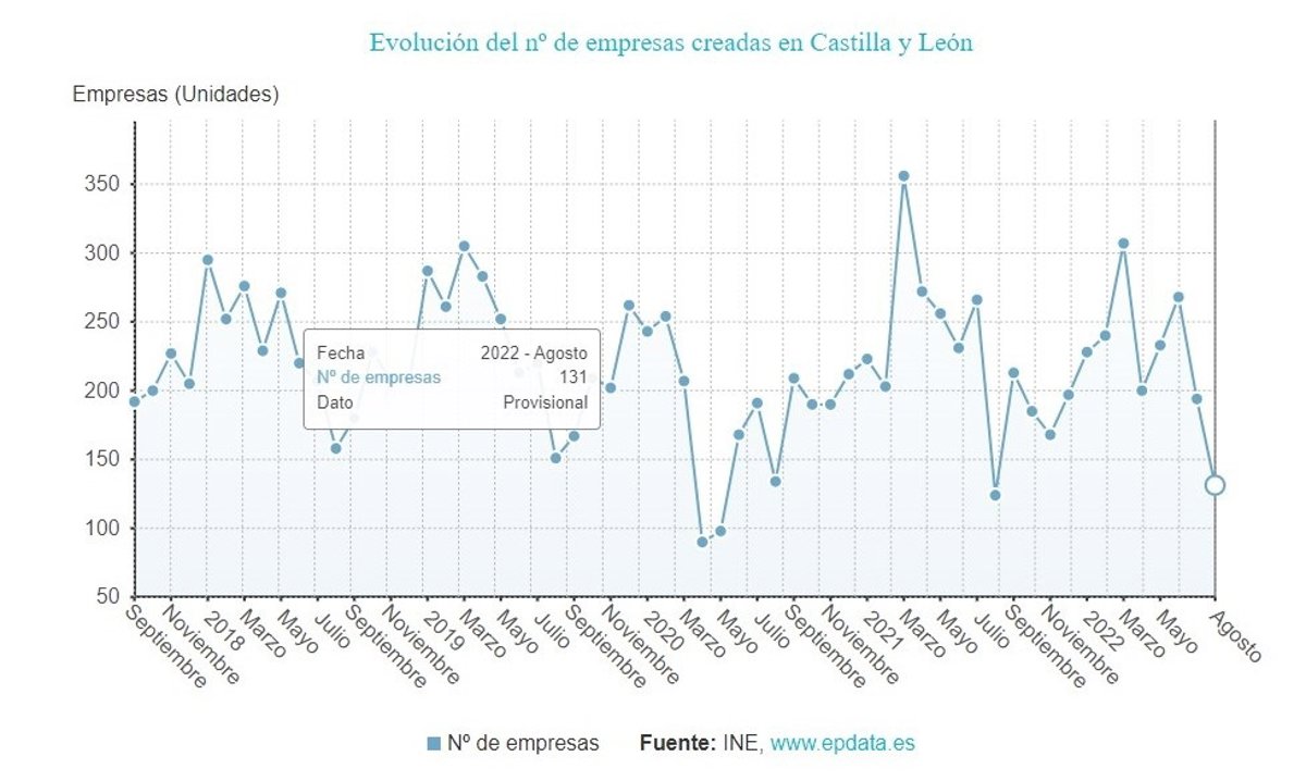 Según los datos publicados por el Instituto Nacional de Estadística (INE) recogidos por Europa Press, Valladolid y León fueron las provincias en las que se crearon más sociedades mercantiles nuevas durante el mes de agosto (27 en ambos casos) seguidas de Burgos y Salamanca, ambas con 22. A continuación se sitúan Segovia, con 14; Ávila, con 8; Palencia y Zamora, las dos con 4, y Soria, con 3.