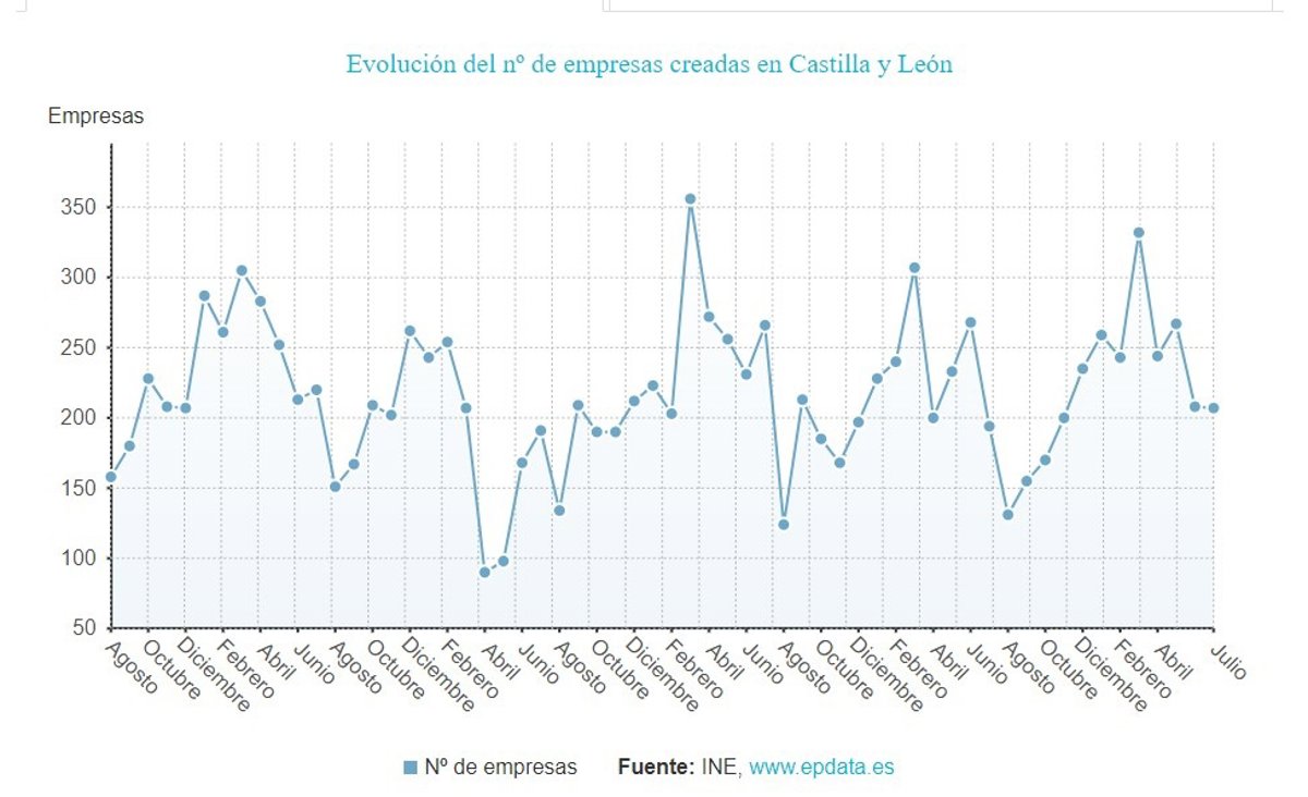 La comunidad autónoma de Castilla y León registró durante el pasado mes de julio un total de 207 nuevas sociedades mercantiles, todas sociedades limitadas, con un capital suscrito por valor de 7,09 millones de euros, también todos ellos desembolsados, según los datos aportados por el INE y recogidos por Europa Press.