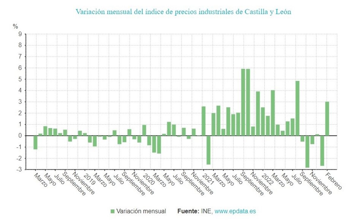 Los precios industriales en Castilla y León aumentaron un 9,6 por ciento en febrero respecto al mismo mes del año anterior, 1,8 puntos por encima de la media que se mantuvo en un 7,8 por ciento, según los datos aportados este viernes por el Instituto Nacional de Estadística (INE) recogidos por Europa Press.