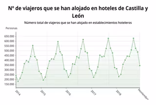 Según los datos de la Encuesta de Ocupación en Establecimientos Hoteleros en noviembre de 2018 hechos públicos por el Instituto Nacional de Estadística (INE), Castilla y León recibió en el citado mes 344.641 viajeros (un 6,35 por ciento más) de los que 288.423 eran residentes en España y 56.218 extranjeros.