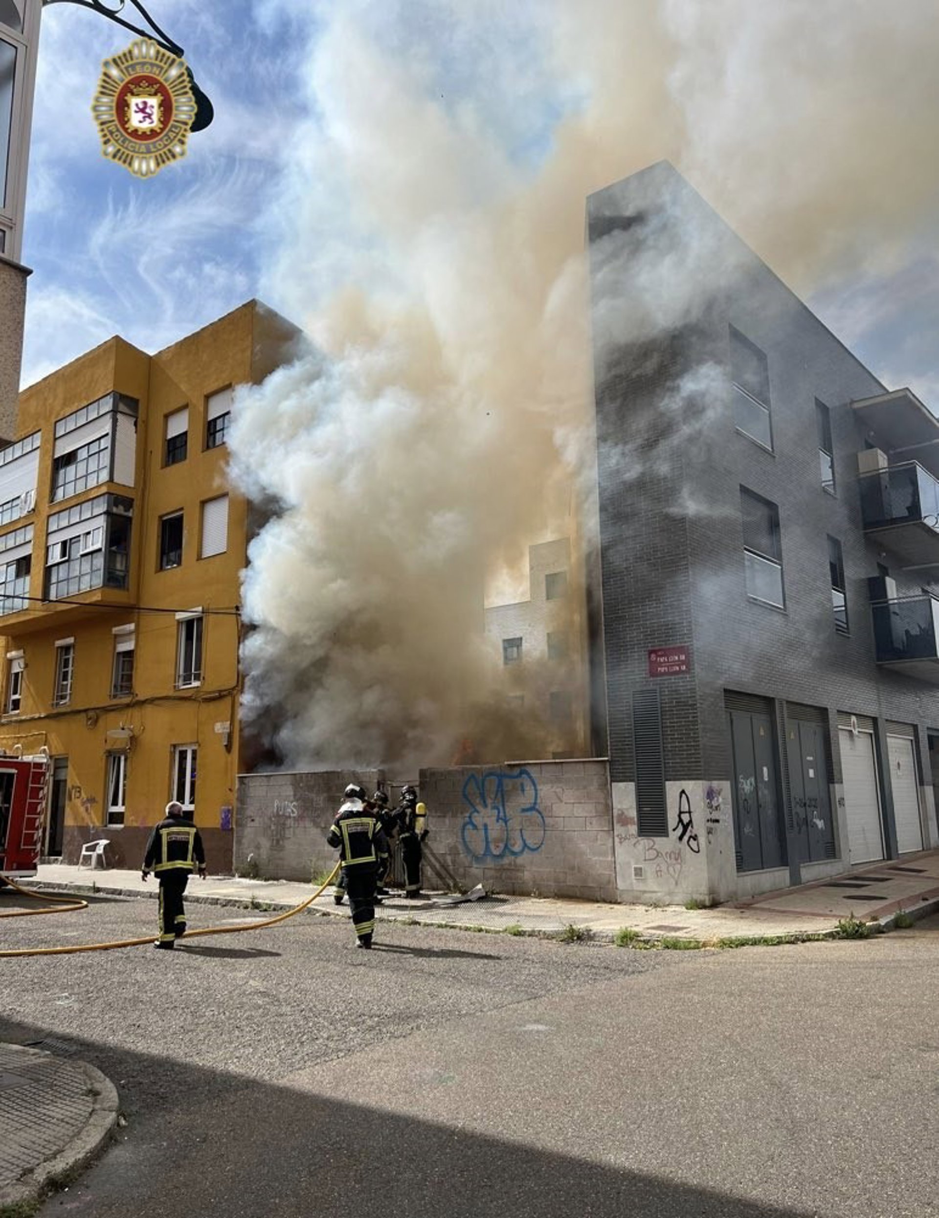 Los Bomberos de León sofocan un fuego en el patio interior de un edificio de la capital - POLICÍA LOCAL DE LEÓN