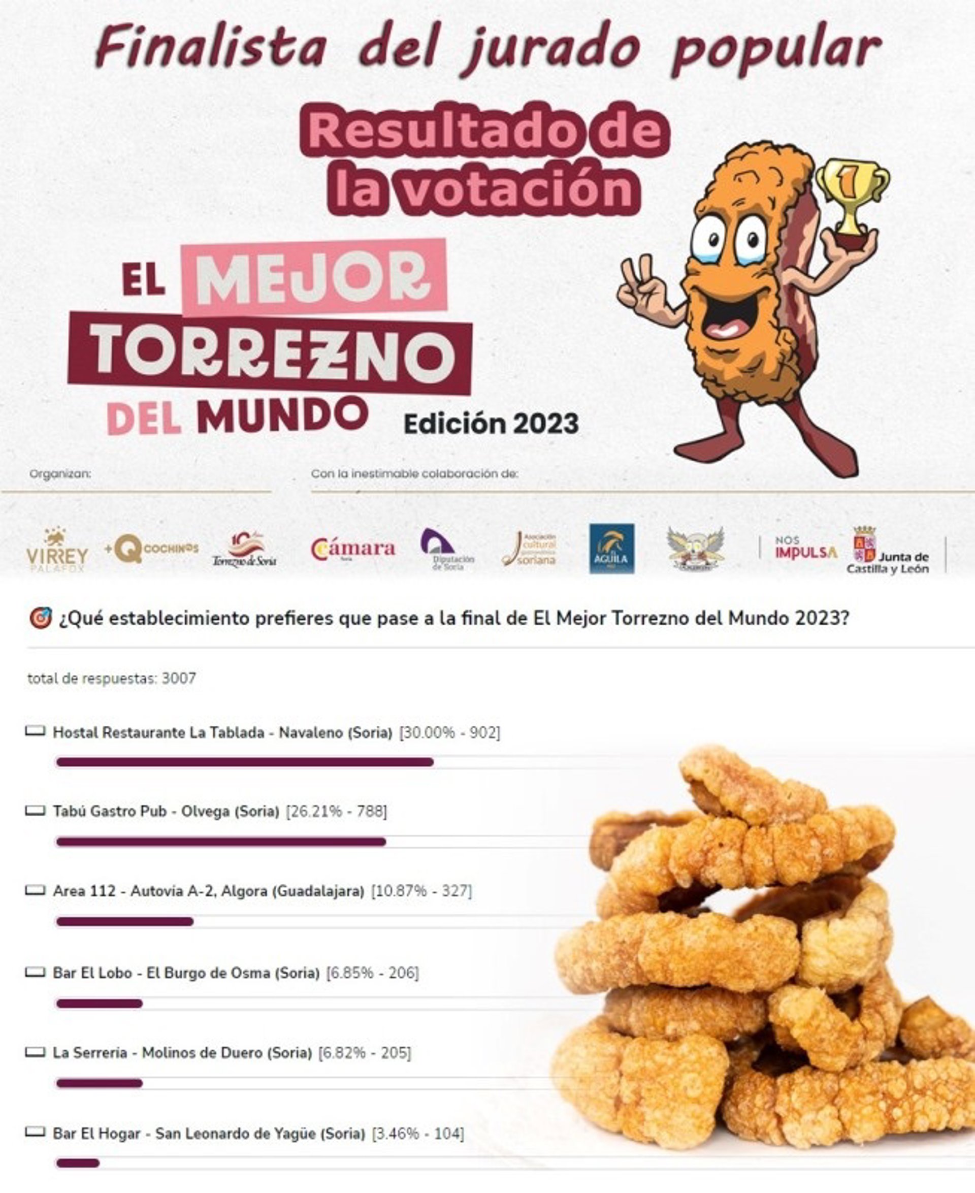 La votación popular ha sido una novedad de la edición del concurso en 2023, y se suma a los establecimientos ganadores en las ocho rondas previas, según han informado desde la marca de garantía Torrezno de Soria.