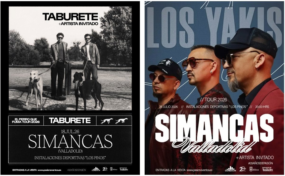Los grupos Taburete y Los Yakis actuarán en el mes de julio en la Instalaciones Deportivas 'Los Pinos' de Simancas (Valladolid), dos conciertos enmarcado s en la celebración del 20 aniversario de la promotora Pasión Eventos.