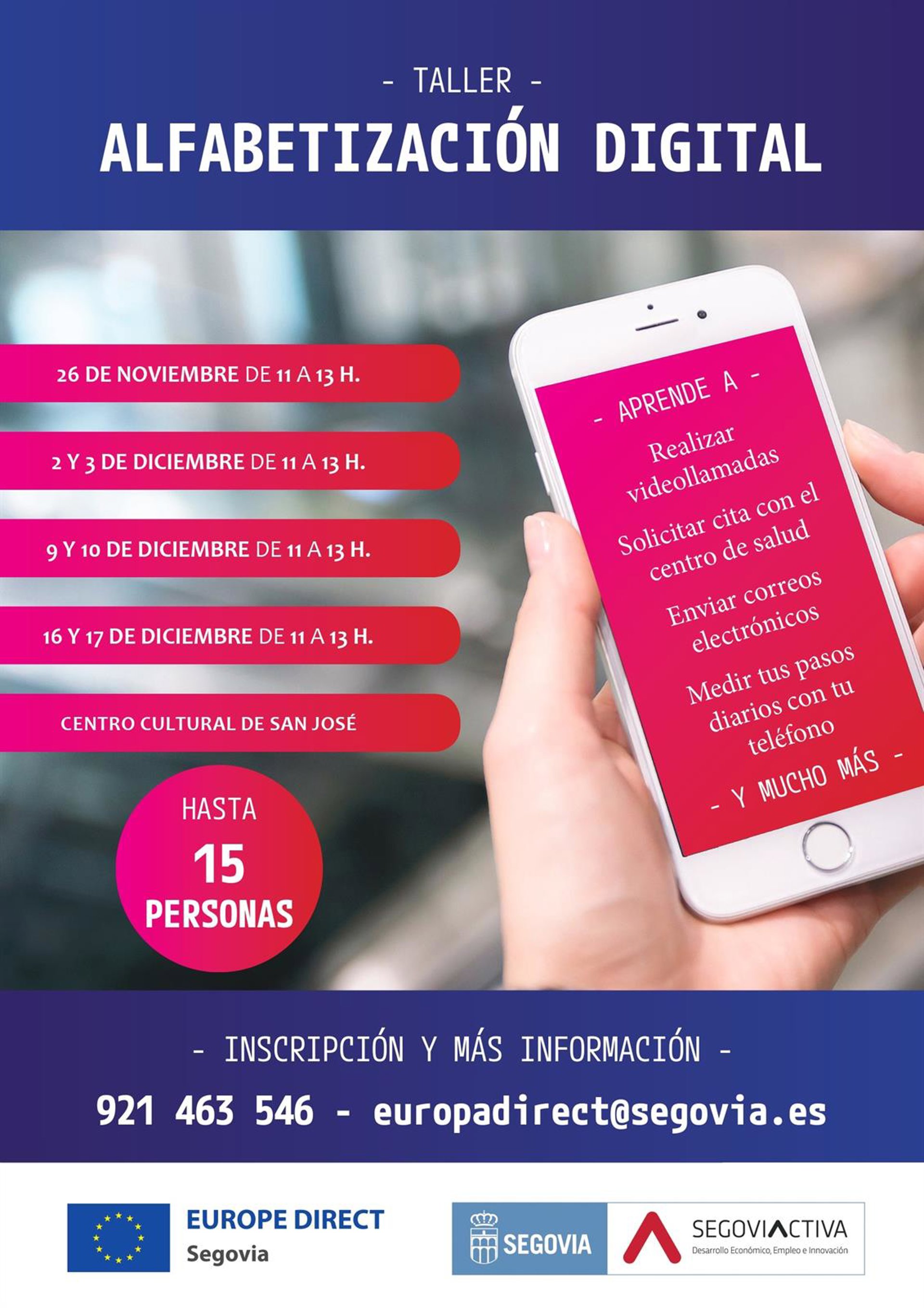 El centro Europe Direct Segovia ha puesto en marcha un taller formativo y gratuito de Alfabetización Digital para facilitar la digitalización a personas con dificultades en el uso de tecnologías de la información y la comunicación (TICs).