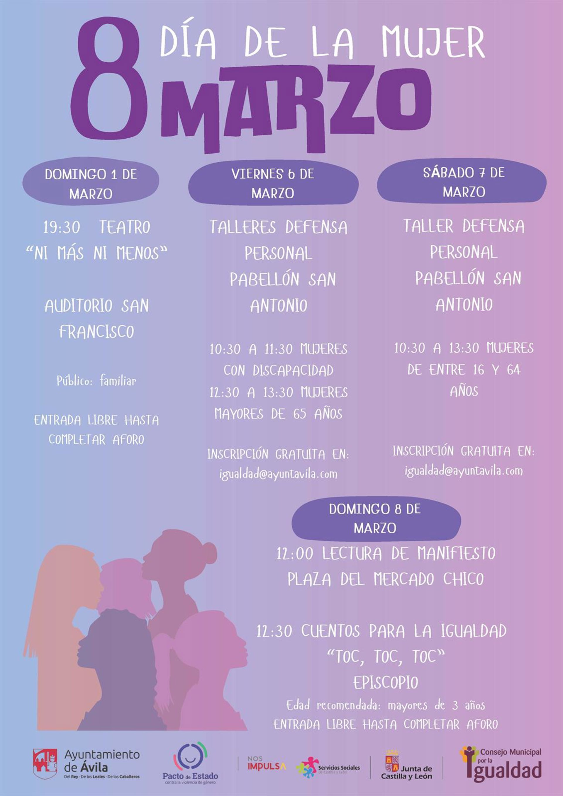 Cartel de las actividades programadas por el Ayuntamiento de Ávila con motivo del 8M. - AYTO ÁVILA