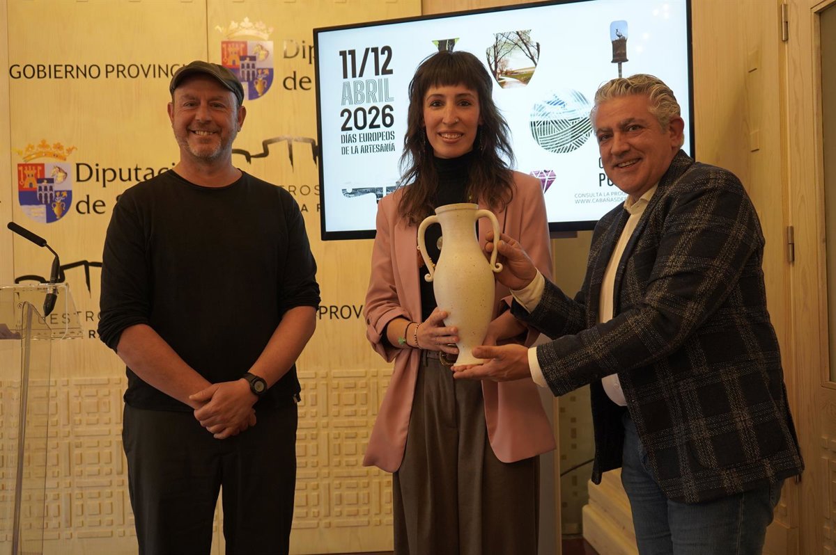 El artesano ceramista Miguel Ángel Fernández, la asesora municipal Sherezade Marazuela y el diputado de Cultura, José María Bravo. - EUROPA PRESS