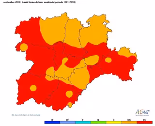 La Aemet concluye además que el pasado mes de septiembre fue "muy cálido o extremadamente cálido" en Castilla y León además de "seco o muy seco" mientras que el año hidrológico (de octubre de 2017 a septiembre de 2018) fue normal y el esperado respecto de la media 1981-2010.