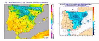 Mapa elaborado por la Aemet sobre la previsión de temperaturas en CyL hasta el martes día 9 de junio - @AEMET_CYL