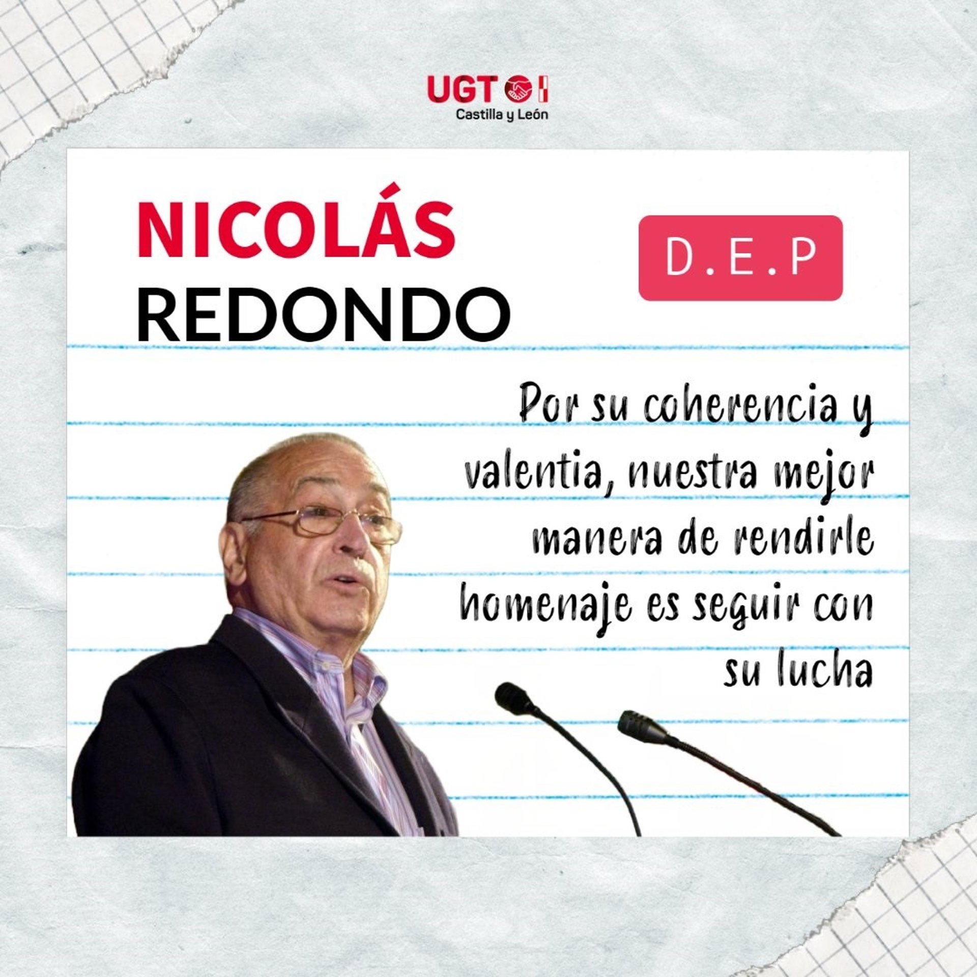 Cartel publicado por UGT en homenaje al fallecido Nicolás Redondo - UGT