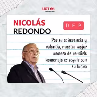 UGT en Castilla y León también lamenta el fallecimiento de Nicolás Redondo, "líder y referencia de UGT y del sindicalismo en general por su lucha por los derechos en nuestro país". "Desde UGT CyL lamentamos profundamente su pérdida. D.E.P", añade el sindicato.