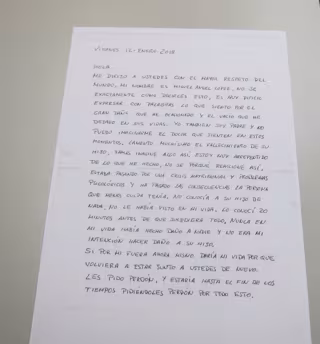 "Me dirijo a ustedes con el mayor respeto del mundo", son las primeras palabras de 'El Terre' con las que, tal y como advierte, le resulta muy difícil expresar lo que siente por el gran daño ocasionado y el vacío dejado en sus vidas.