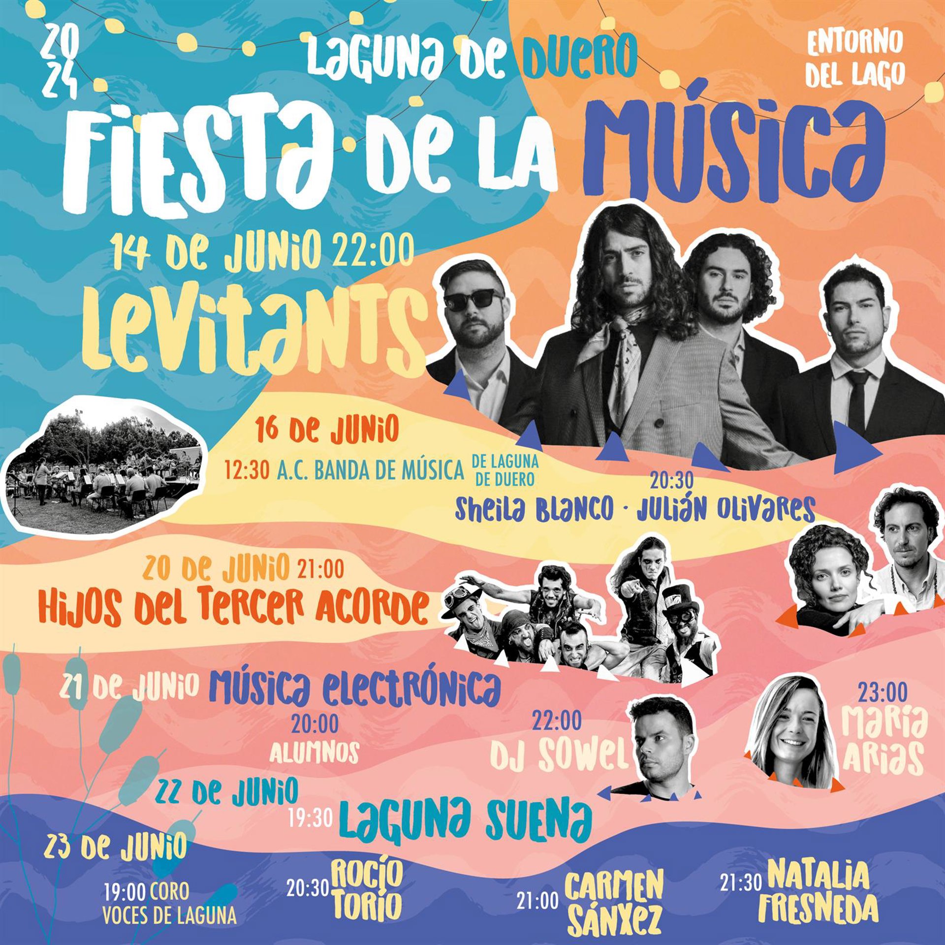 The Levitants, Hijos del Tercer Acorde, Rocío Torio, DJ Sowel o María Arias, entre otros, actuarán en la séptima edición de la Fiesta de la Música de Laguna de Duero (Valladolid), que se celebrará del 14 al 23 de junio en el entorno del lago.