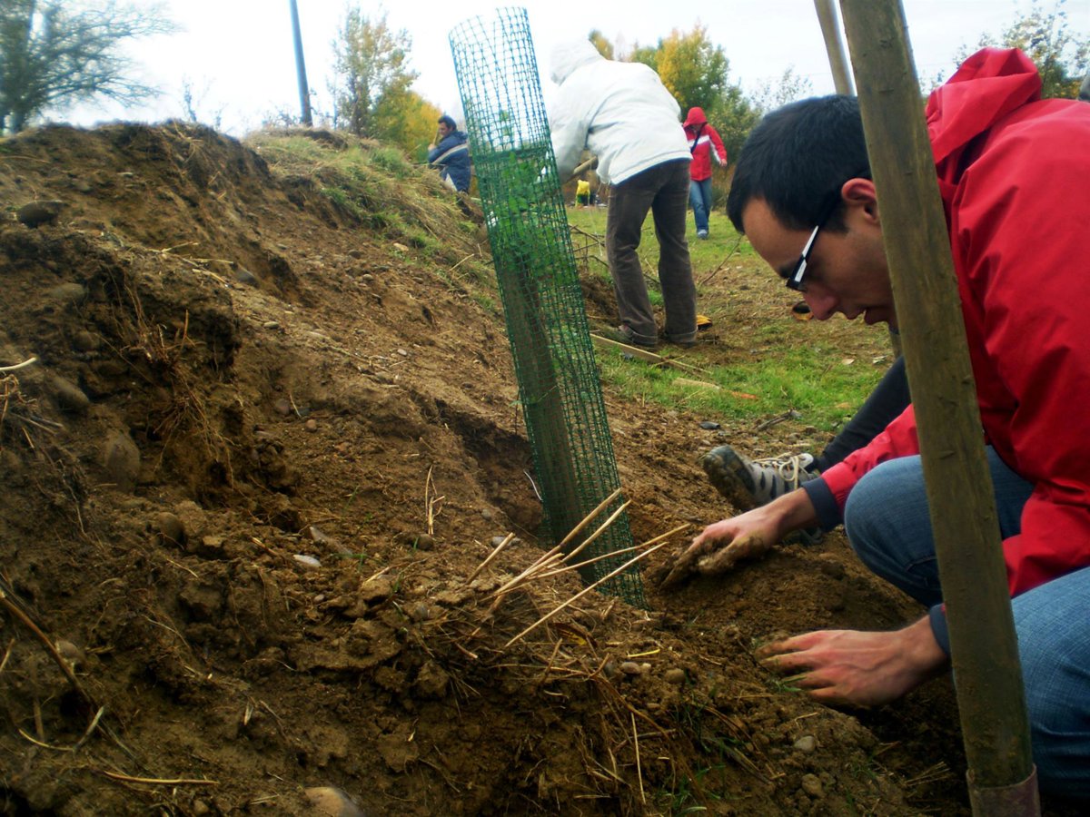 La plataforma Tierra de Campos Viva ha plantado este sábado varios ejemplares de fresnos, aligustres, saucos y boneteros cedidos por la Asociación para la Recuperación del Bosque Autóctono (ARBA) de Valladolid en la ribera del río Valderaduey a su paso por Santervás de Campos (Valladolid).