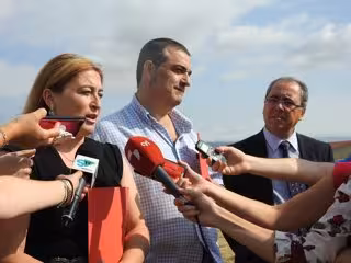 La alcaldesa de Garray María José Jiménez, el presidente de Tierraquemada Alberto Santamaría y el responsable de Instituciones de Caja Rural Tomás Mugarza. - EUROPA PRESS.