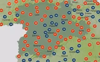 En concreto, los avisos estarán activos desde las 13.00 horas y hasta las 20.59 de este domingo en las mesetas de Ávila, Burgos, Salamanca, Segovia, Soria, Valladolid, Zamora y Palencia; en el sistema central de Ávila, Salamanca, Segovia y Soria; en el sur de Ávila y Salamanca; en el norte de Burgos y en la ibérica de Soria y Burgos, así como en el Condado de Treviño (Burgos) y en el Bierzo, en León, ante la previsión de temperaturas máximas de hasta 37 grados.
