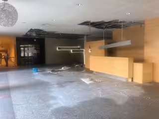 Vestíbulo de las Cortes afectado por desprendimientos del techo de escayola como consecuencia de las lluvias torrenciales caídas la pasada noche. - EUROPA PRESS.