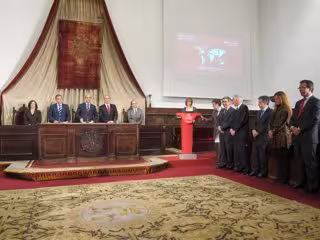 Los becarios han recogido sus credenciales en un acto celebrado en el Paraninfo de la Institución académica, en el que han intervenido el rector de la USAL, Daniel Hernández, el consejero de Educación de la Junta de Castilla y León, Juan José Mateos, y el director general de Banco Santander, José Antonio Villasante.