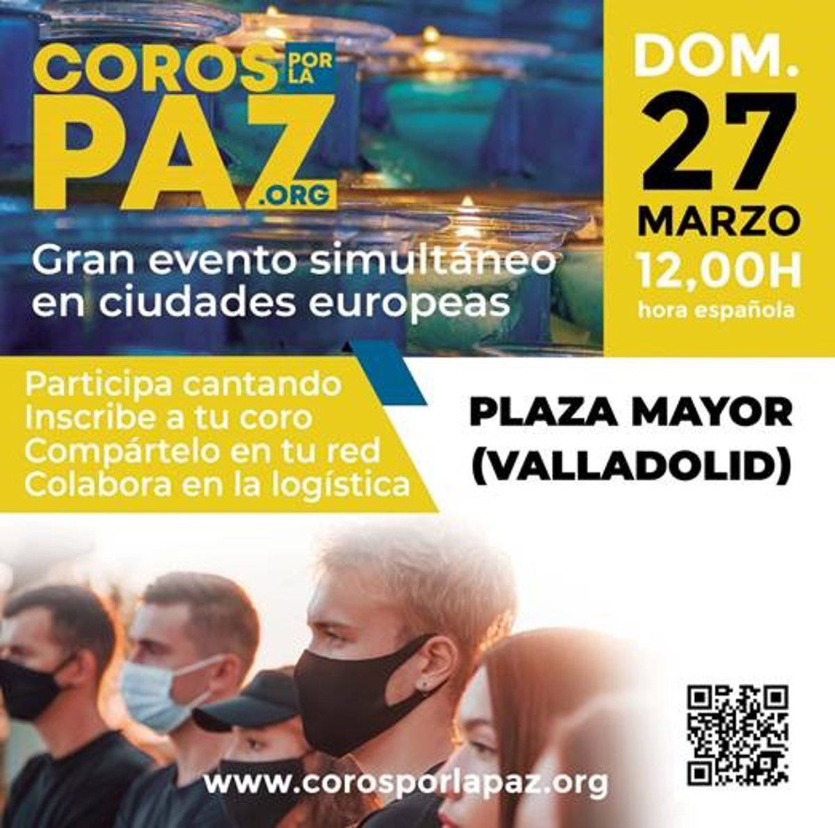 En Valladolid, la Coral La Enseñanza lidera la convocatoria, que se celebrará en la Plaza Mayor a las 12.00 horas de este domingo, de manera simultánea con otras ciudades españolas y europeas en la iniciativa 'Coros por la Paz'.