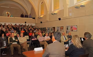 El acto de presentación ha contado también con la presencia del responsable del gabinete de comunicación de Cajamar, José María Pereletegui, y de la alcaldesa de Aguilar de Campoo, María José Ortega, quien hizo especial hincapié en el éxito que año tras año tienen los cursos organizados por la Fundación Santa María la Real.