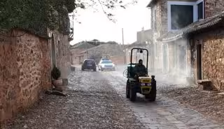 Imagen de la labor voluntaria de uno de los trabajadores de la BRIF de Tabuyo (León) en la desinfección de una localidad. - BRIF TABUYO