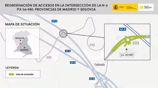 La actuación tiene como objetivo mejorar la seguridad vial en este punto, especialmente en los giros a la izquierda y, para ello, se construirán accesos a ambos márgenes mediante una glorieta de 46 metros de diámetro, con dos carriles de cuatro metros de anchura y se mantendrá el carril para vehículos lentos de la N-6, así como su longitud actual.