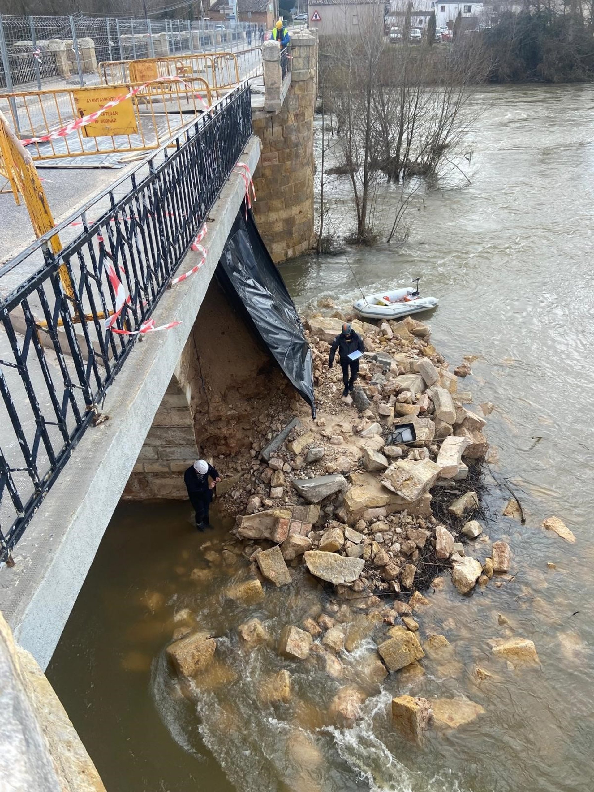 El Ministerio ha informado de que con fecha 17 de marzo y "pese al importante caudal del rio" se pudo realizar una inspección de las cimentaciones del puente por buzos especialistas que corroboraron el "buen estado" de estas.