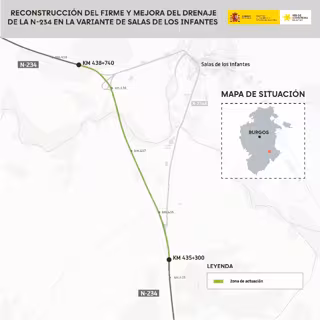 El Ministerio de Transportes y Movilidad Sostenible ha licitado por 6,8 millones de euros las obras para la reconstrucción total del firme, la construcción de drenaje subterráneo y mejora del drenaje superficial de la carretera N-234 en la variante de Salas de los Infantes (Burgos).