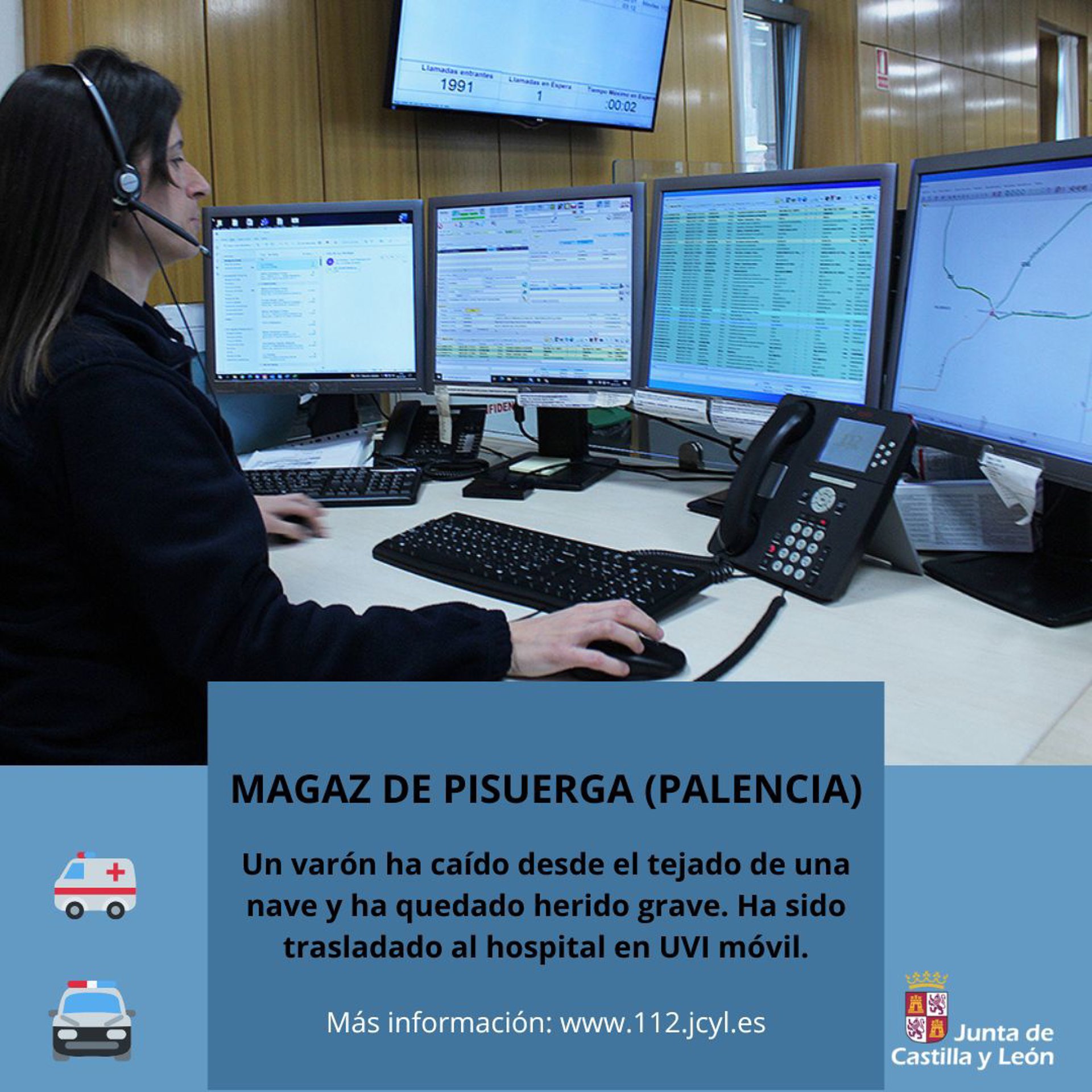 El suceso ha tenido lugar minutos antes de las 16.05 horas de este lunes, cuando la sala de operaciones del 112 Castilla y León ha recibido una llamada que alertaba de la caída de un varón desde el tejado de una nave a la altura del kilómetro 78 de la N-620A en Magaz e indicaba que el afectado estaba herido de gravedad.