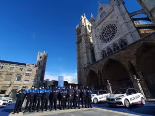 Archivo - El cuerpo municipal de Policía de León ante la Catedral. - AYUNT. DE LEÓN. - Archivo