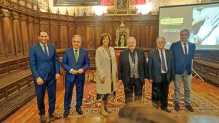 El alcalde de Palencia, el delegado de la Junta, la presidenta de la Diputación, el obispo de Palencia y el comisario de la muestra presentan la exposición Renacer. - EUROPA PRESS