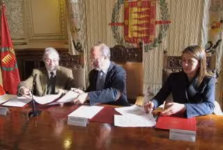 El Ayuntamiento de Valladolid y la UVA han firmado este lunes un convenio mediante el cual se permitirá que estudiantes universitarios vivan de alquiler en pisos promovidos por la Sociedad Municipal de Vivienda y Suelo (VIVA) y ejerzan de "enlace social" entre la comunidad de vecinos y la promotora.