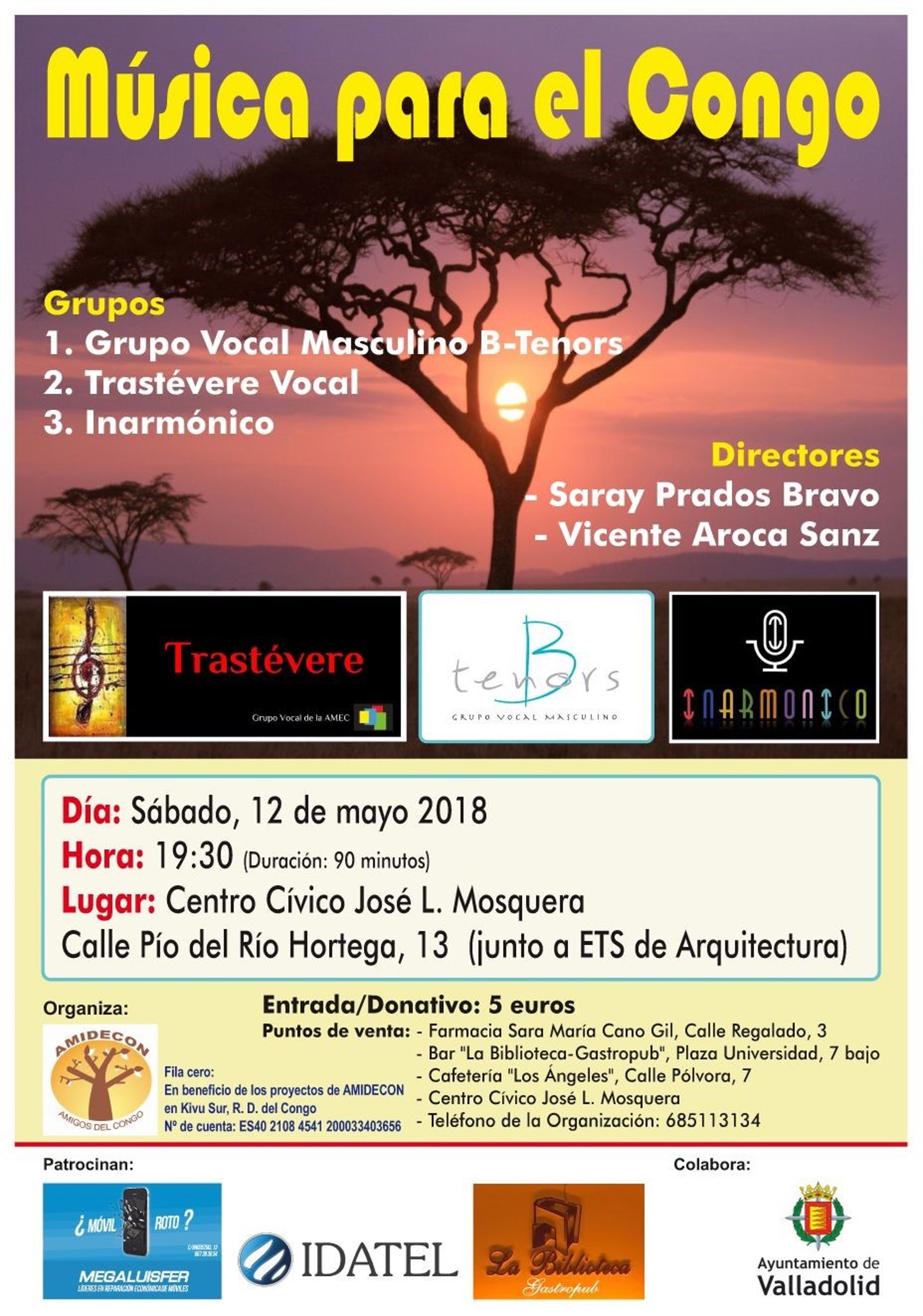 Tres grupos musicales ofrecerán este sábado, 12 de mayo, un concierto benéfico en favor de la organización no gubernamental Amigos para el Desarrollo de la República Democrática del Congo (Amidecon), que lleva a cabo diferentes proyectos en la provincia de Kivu Sur.